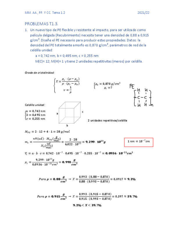 He publicado nuevos apuntes de 4º Materiales Avanzados, Poliméricos, Compuestos: PROBLEMAS-T1.pdf