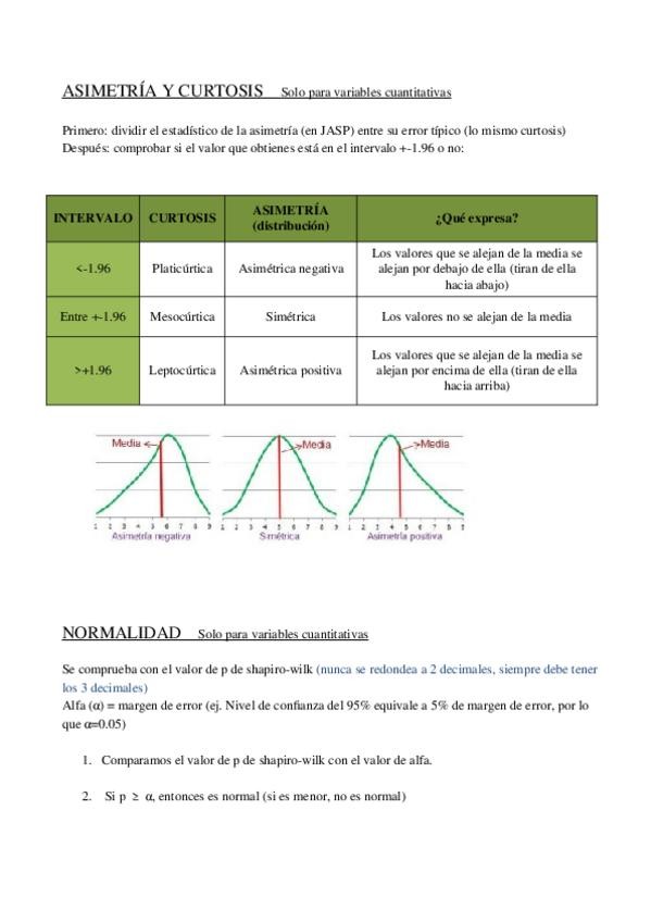 Chuleta muy ordenada con todos los pasos a seguir en cada prueba de JASP, explicaciones y capturas de pantalla. Se entiende fácil y es muy útil para hacer las prácticas siguiendo los pasos y para estudiar de forma más clara y menos caótica.
