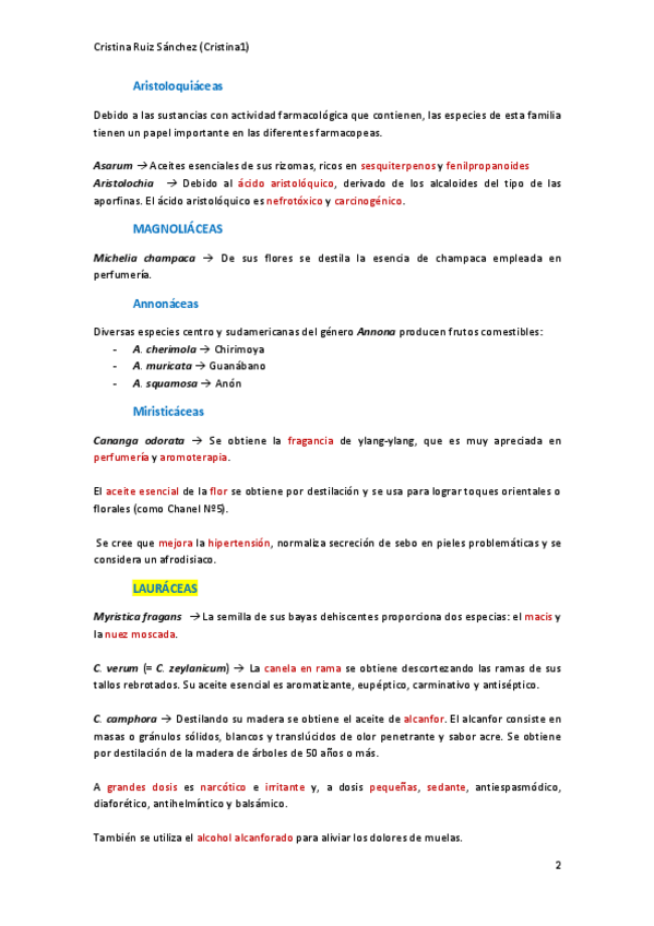 Familias de Angiospermas que son menos importantes. (No entran en el examen como pregunta larga).He subido también las que pueden entrar como pregunta larga: "RESUMEN FAMILIAS MÁS IMPORTANTES"