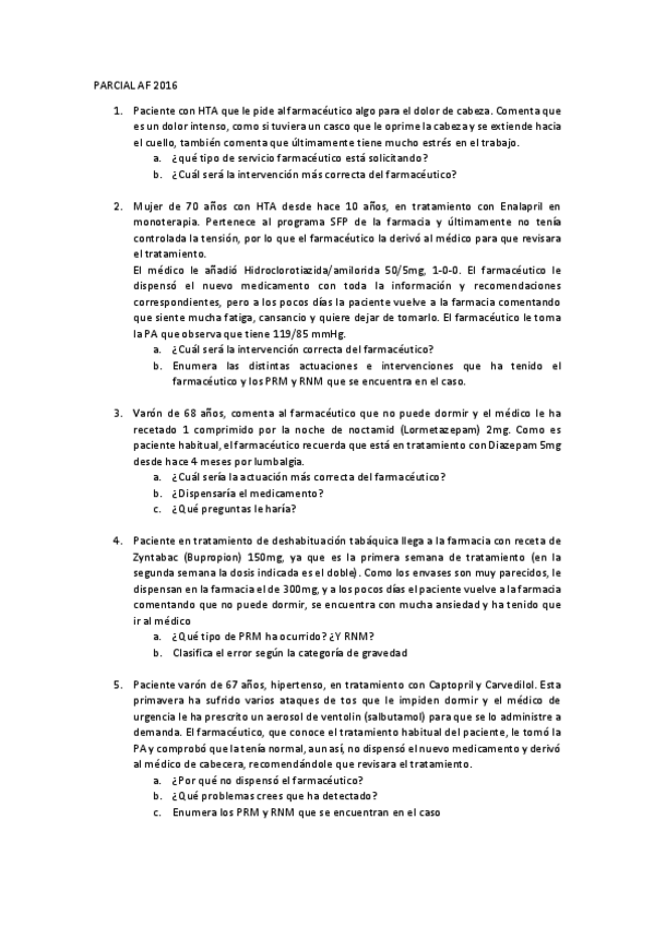 He publicado nuevos examenes de 5º Farmacología y Farmacoterapia III y Farmacia Clínica: PARCIAL FARMACIA CLÍNICA.pdf