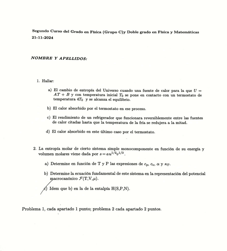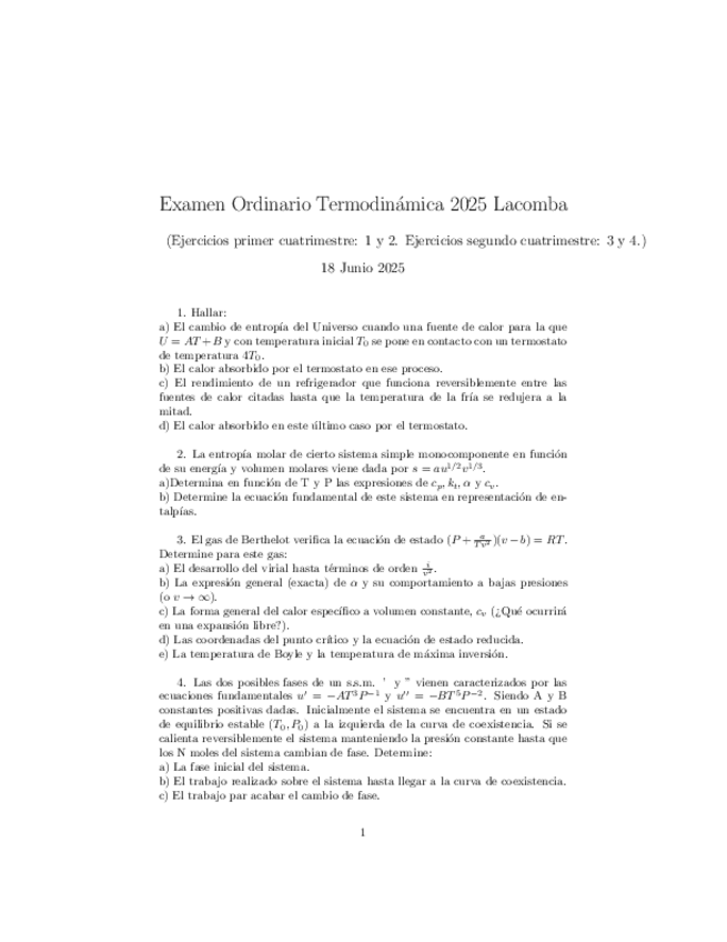 He publicado nuevos examenes de 2º Termodinámica: ExamenOrdinarioTermodinamica2025Lacomba.pdf