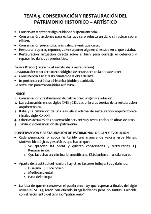He publicado nuevos apuntes de 1º Patrimonio Cultural Histórico y Artístico: TEMA 5. Conservación y restauración del patrimonio histórico - artístico.pdf