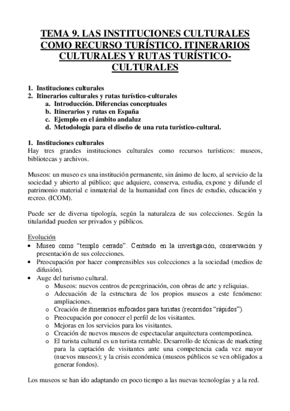 He publicado nuevos apuntes de 1º Patrimonio Cultural Histórico y Artístico: TEMA 9. Las instituciones culturales como recurso turístico.pdf