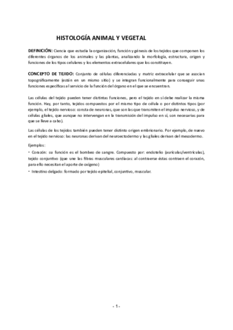 Temario Histología Vegetal y Animal
