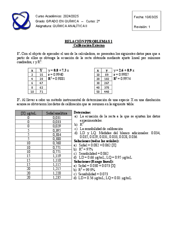 He publicado nuevos ejercicios de 2º Química Analítica I: Ejercicios todo analitica 1