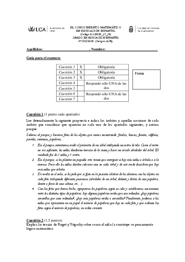 He publicado nuevos examenes de 2º El Conocimiento Matemático en Educación Infantil: 2018 Examen FEBRERO - resuelto.pdf