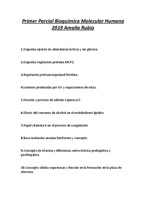 Primer examen de bioquímica molecular humana de 2019.