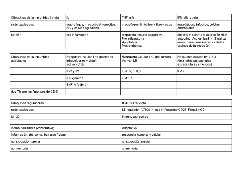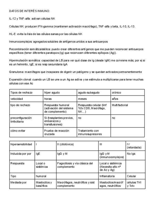 He publicado nuevos apuntes de 2º Inmunología: Tablas inmuno