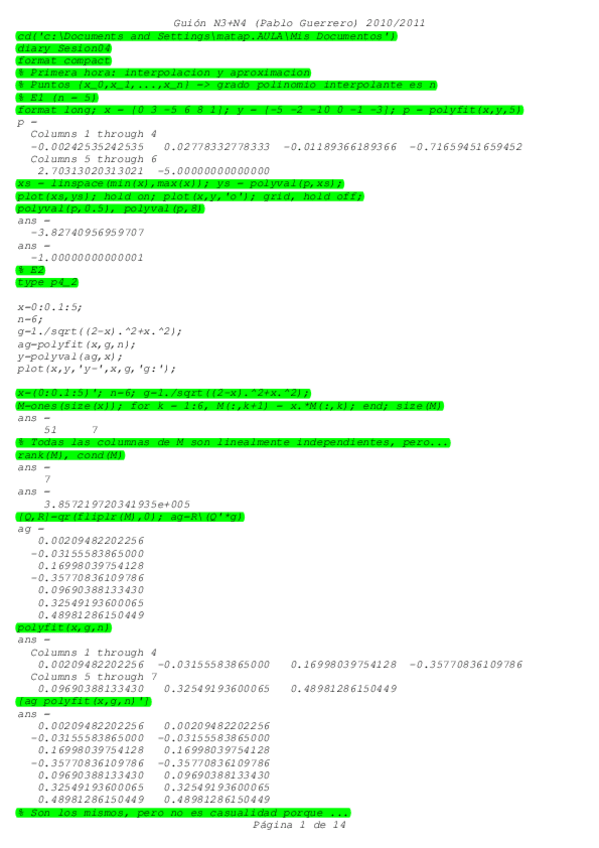 Práctica de MATLAB de Métodos Numéricos (incluye correcciones y anotaciones)