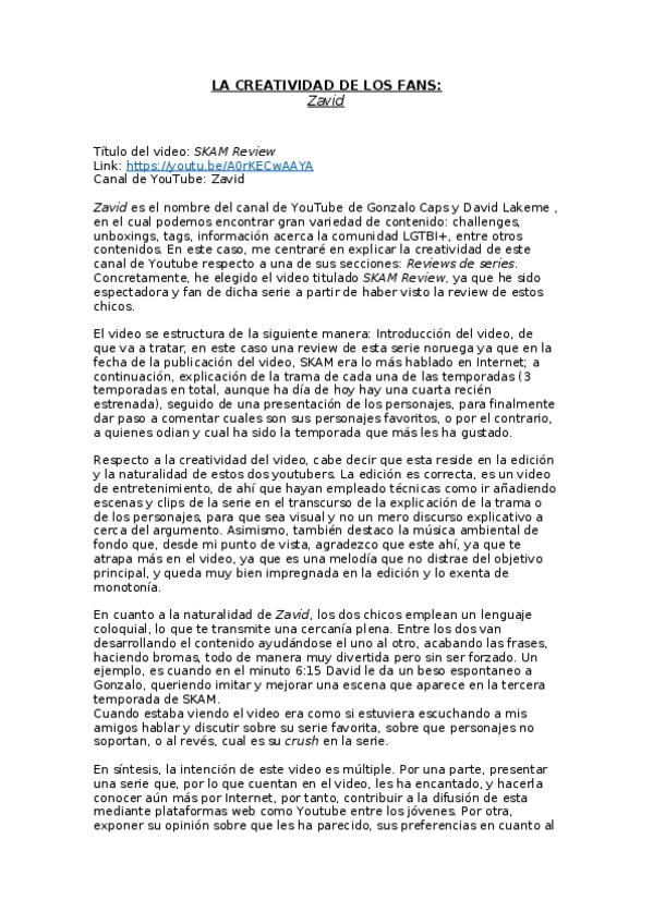 He publicado nuevos trabajos de 1º Comunicación Audiovisual: LA CREATIVIDAD DE LOS FANS.docx