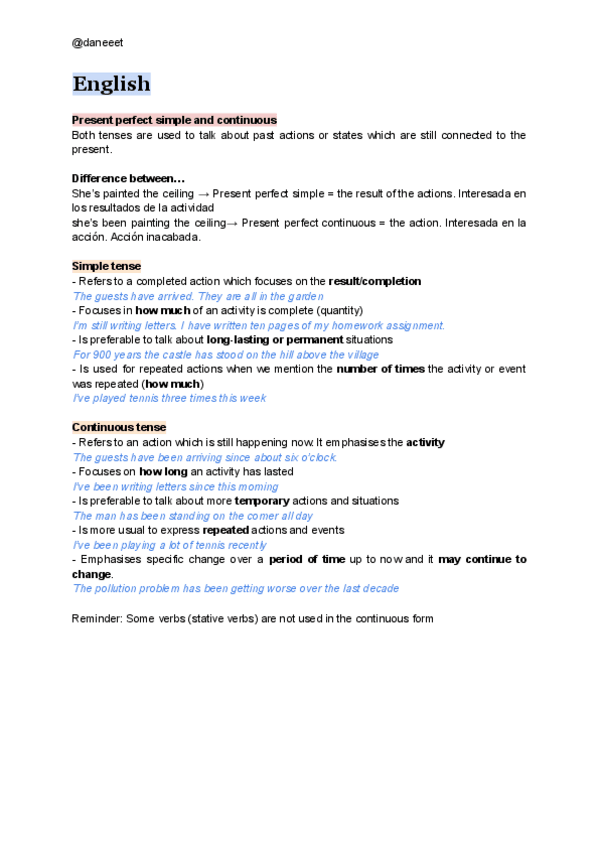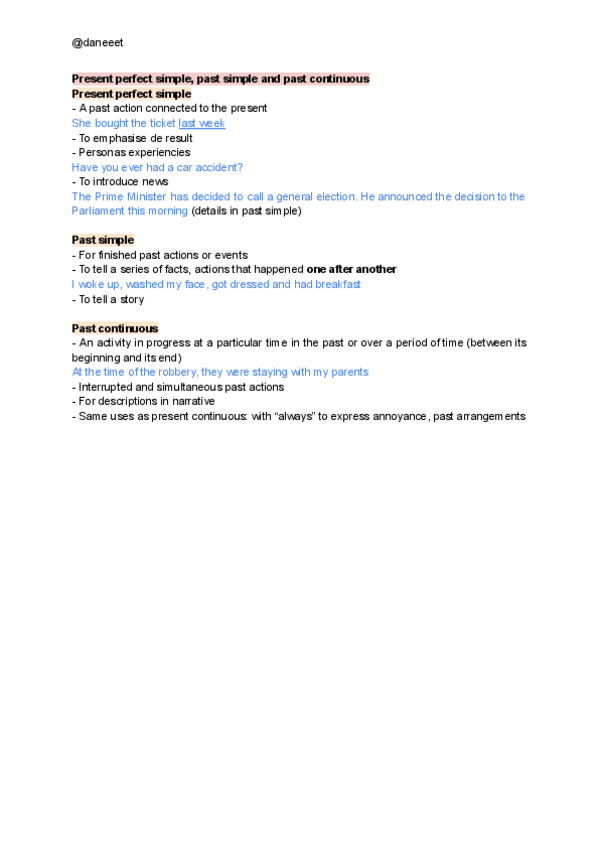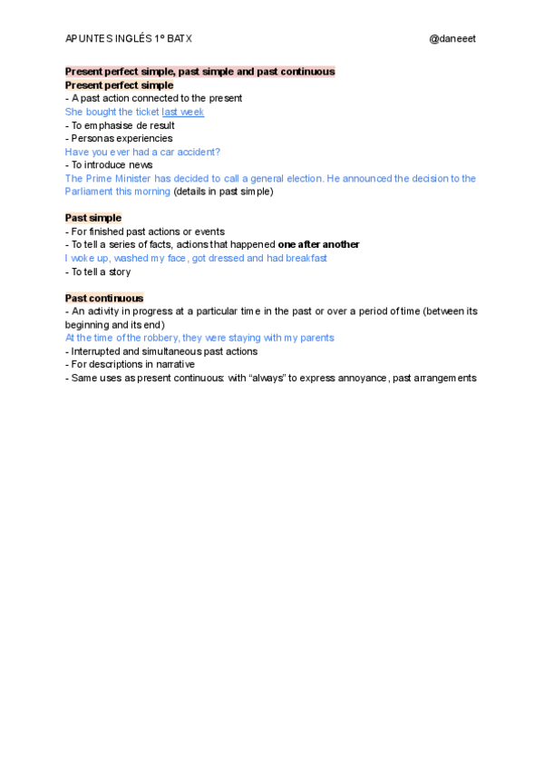 Apuntes sobre el Present perfect simple, past simple and past continuous