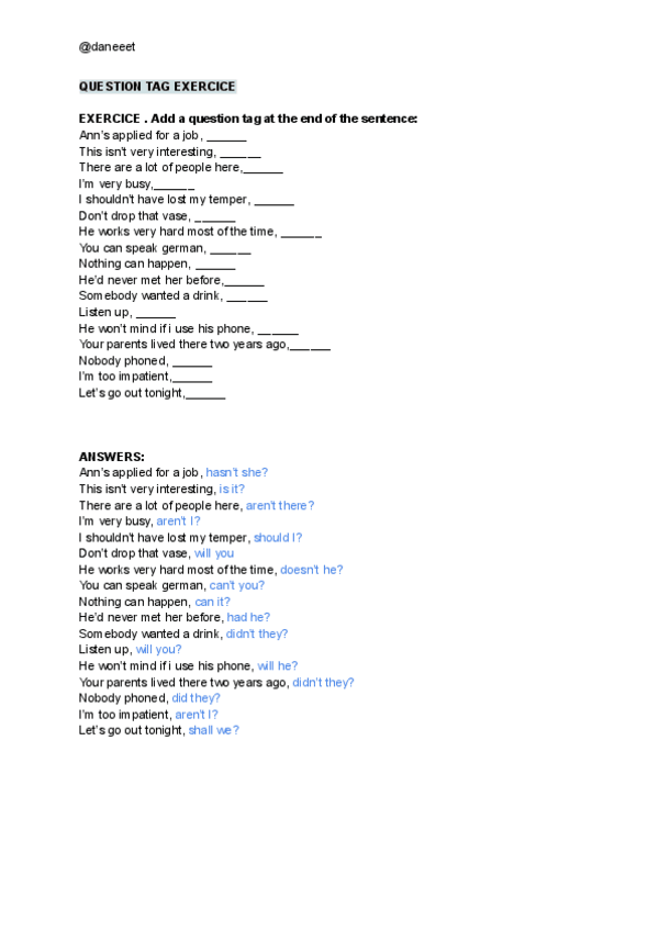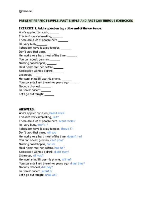 He publicado nuevos ejercicios de 1º Inglés I: Question-tags--exercice.pdf