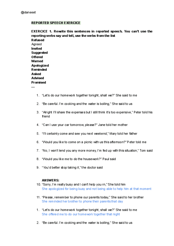He publicado nuevos ejercicios de 1º Inglés I: REPORTED-SPEECH-EXERCICE.pdf