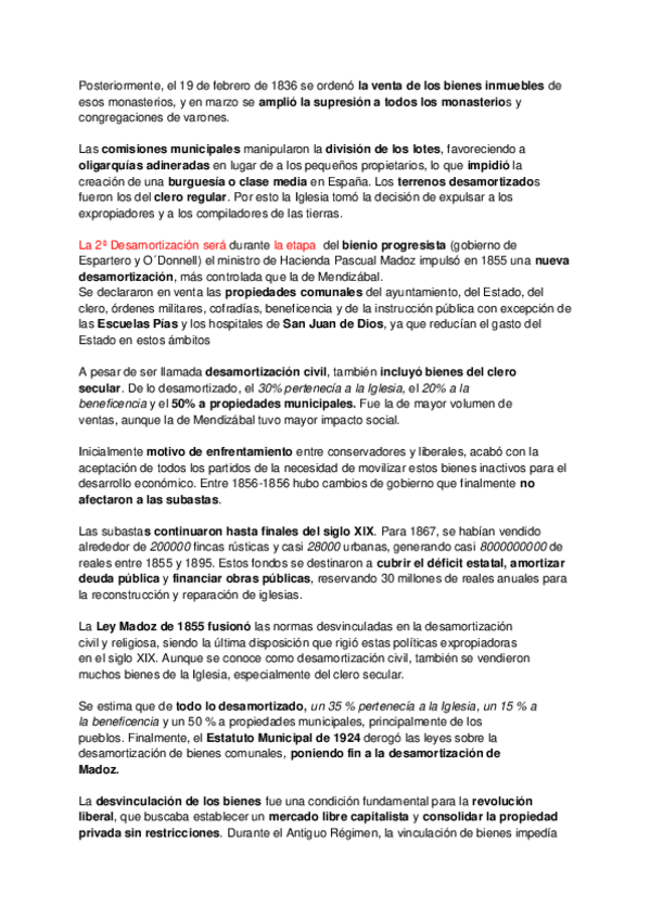 Epígrafe 11 Historia de España, Las desamortizaciones resumidas