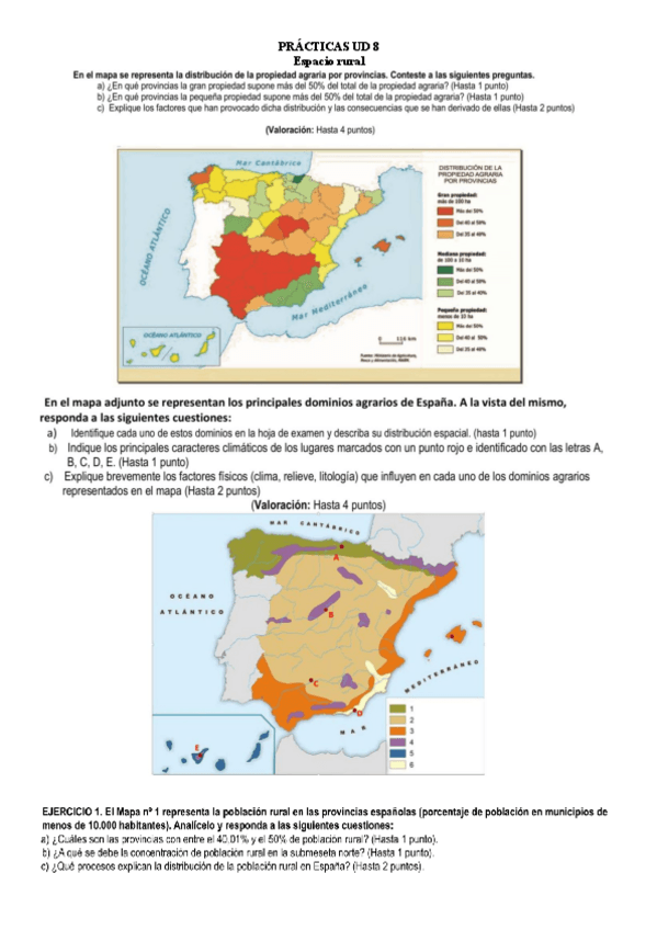 Ejercicios sin resolver para practicar de la unidad 8- el espacio rural (este finde subiré las soluciones)