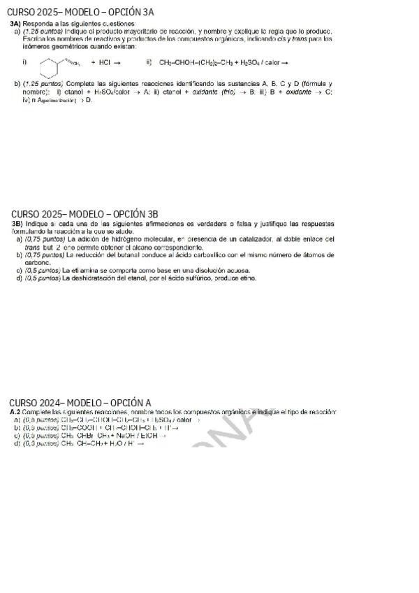 Ejercicios PAU bloque química orgánica