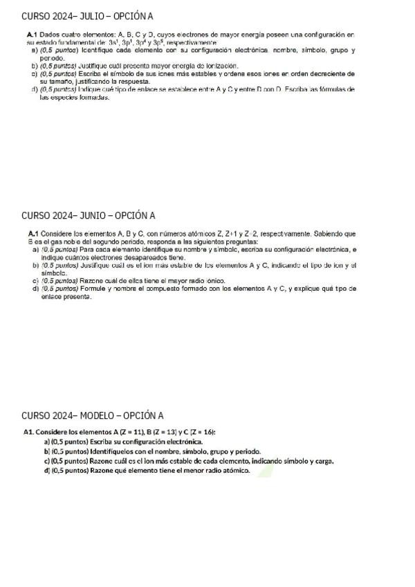PAU Química el átomo, enlace químico