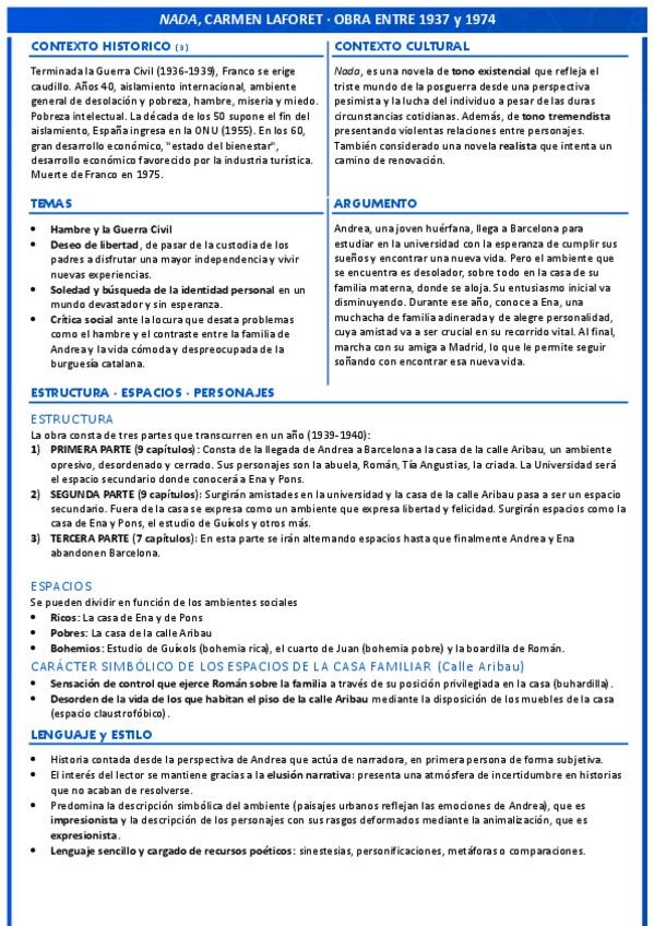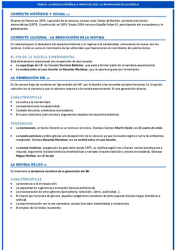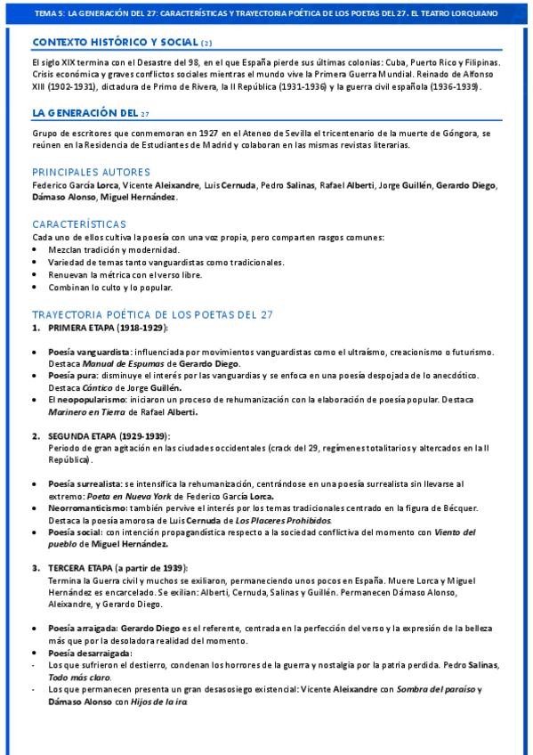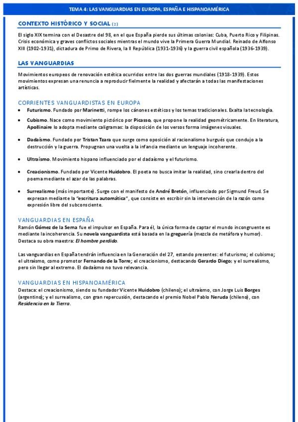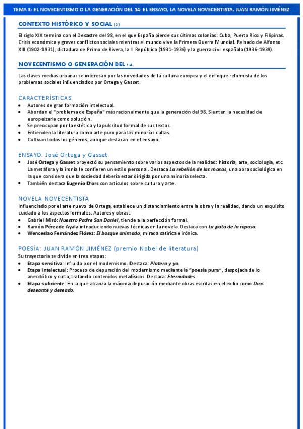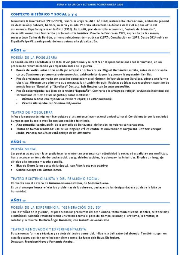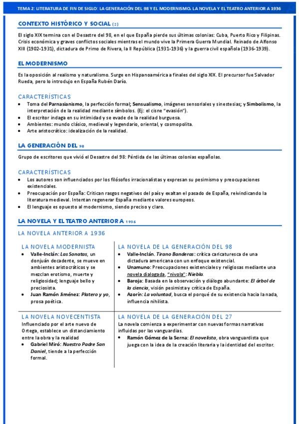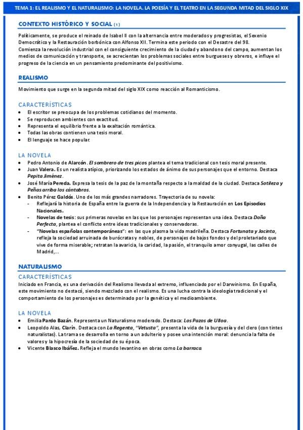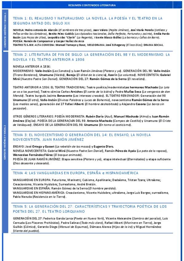 Resumen a una cara de todas las obras, autores y características del tema