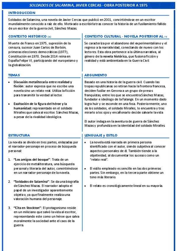 Obra escrita posterior a 1975, con todos los aspectos literarios resumidos a una cara