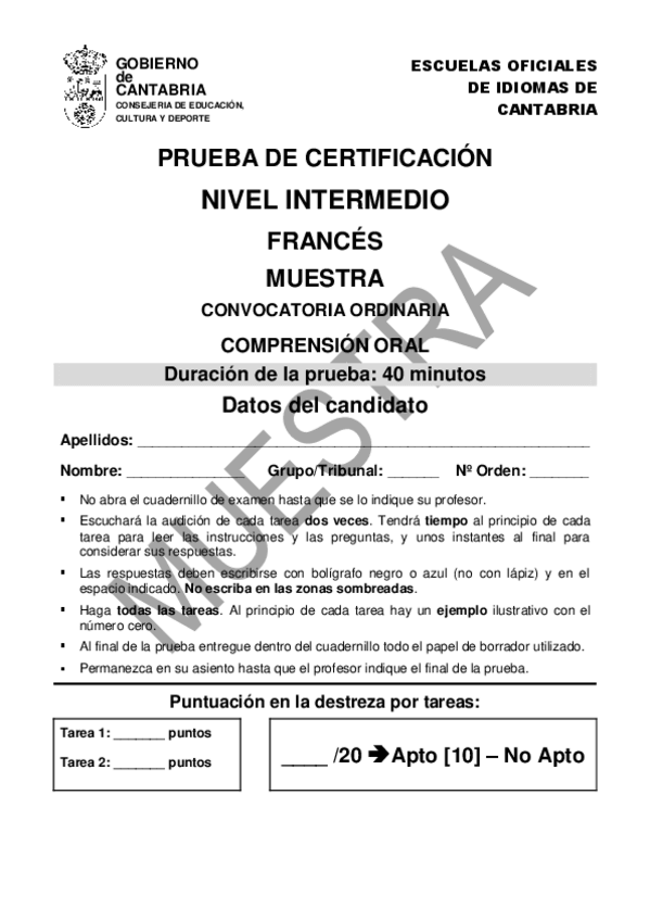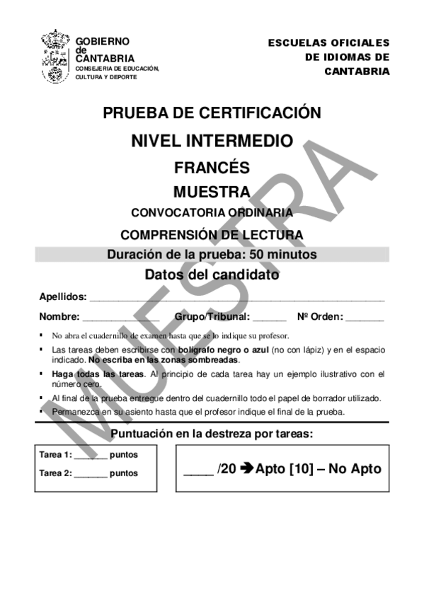 He publicado nuevos examenes de 1º Francés I: Preparación B2