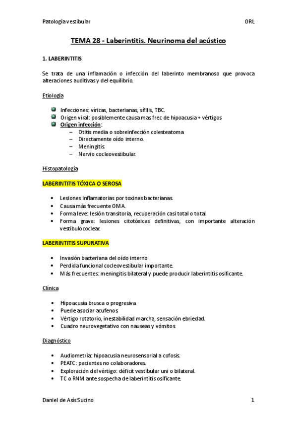 He publicado nuevos apuntes de 4º Otorrinolaringología: PATOLOGÍA VESTIBULAR (Equilibrio)