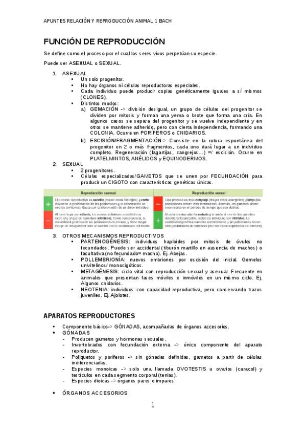 Apuntes de reproducción y relación animal, biología I 1 bach.