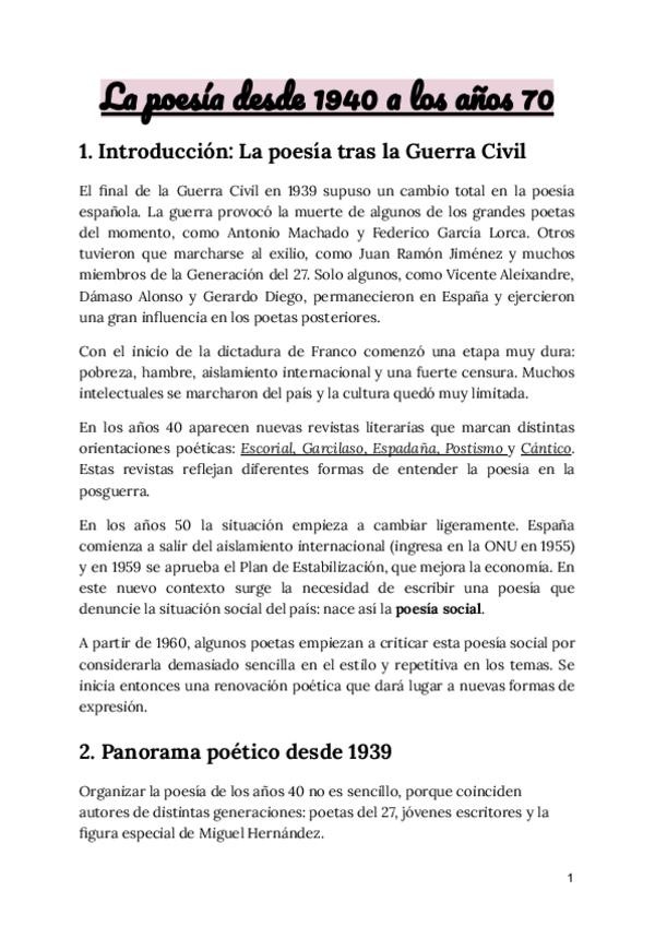 Apuntes de literatura para selectividad: La poesía desde 1940 a los años 70 :)