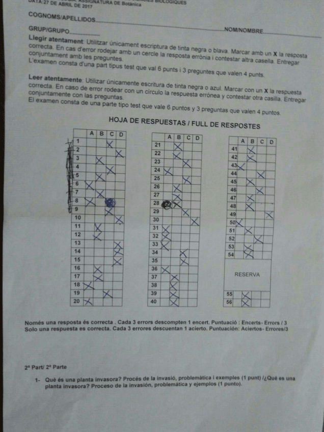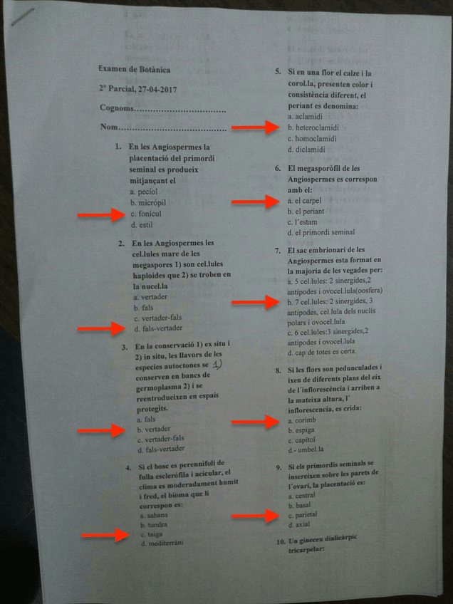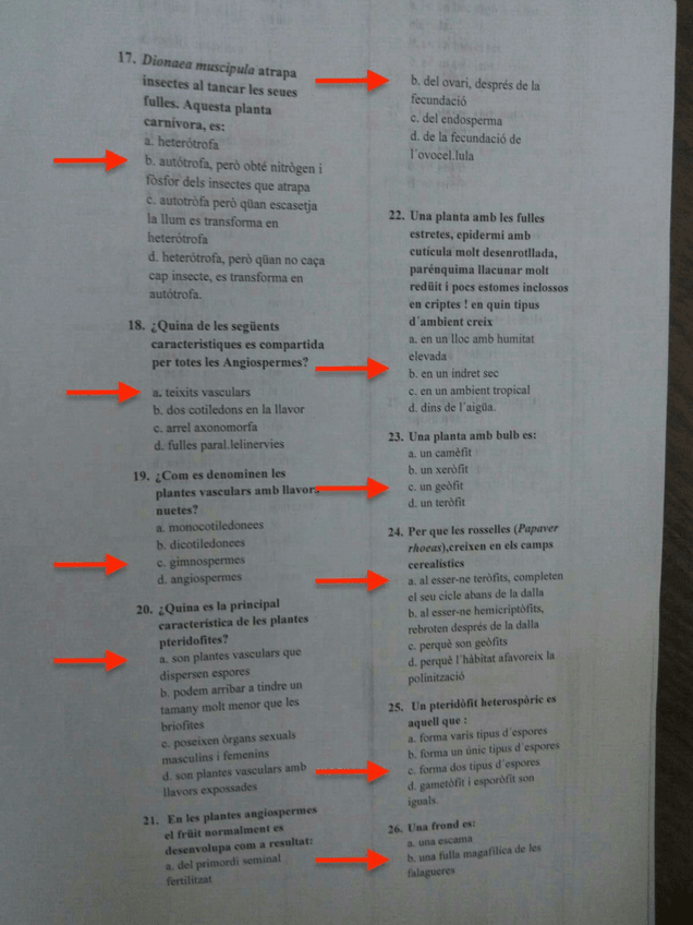 He publicado nuevos test de 2º Botánica: Examen segundo parcial