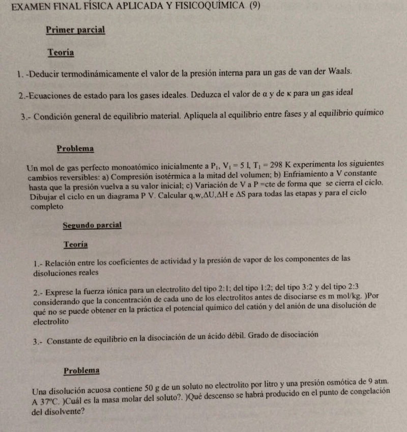 He publicado nuevos examenes de 2º Fisicoquímica: Más exámenes