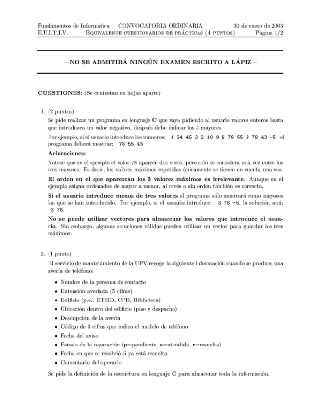He publicado nuevos examenes de 1º Ciencia de Materiales I: FIN - 2002-Enero-30 - cuestiones.pdf