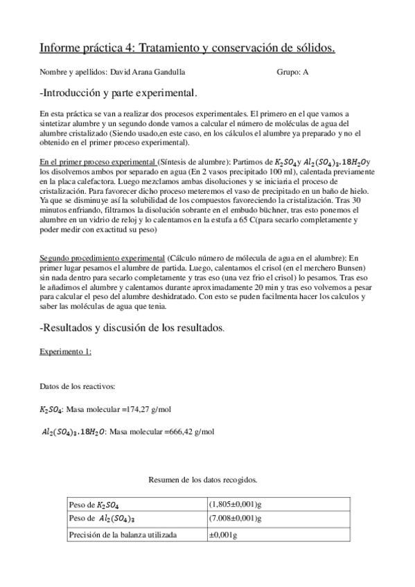 He publicado nuevos apuntes de 1º Operaciones Básicas de Laboratorio: OBL practica 4 Alumbre informe.pdf