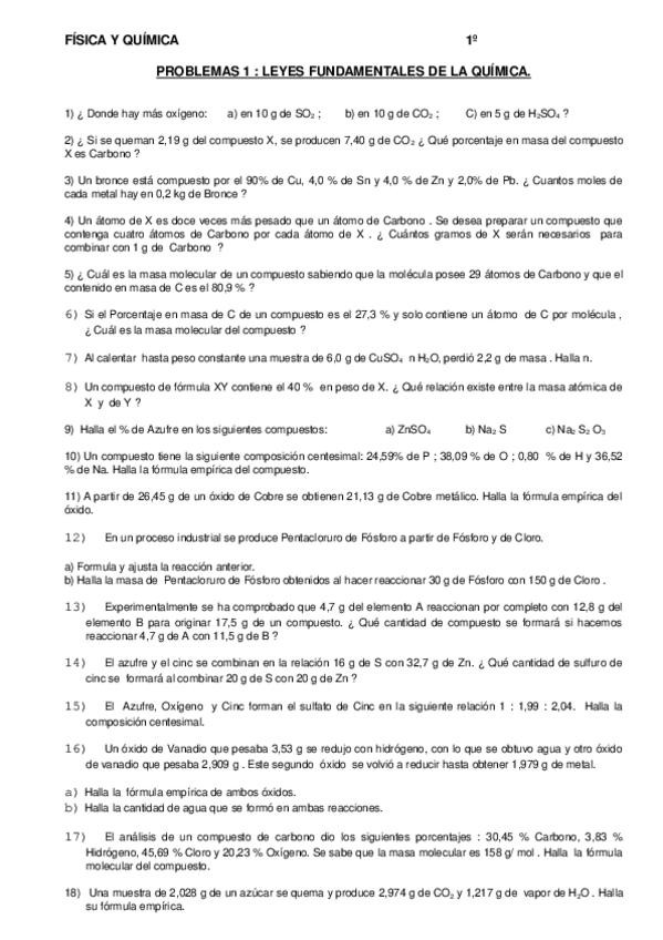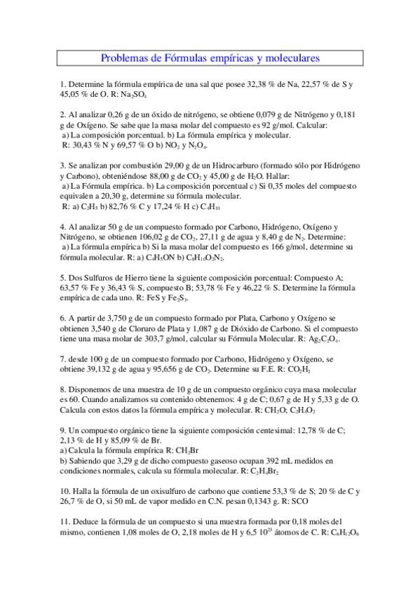 Ejercicios con solución de fórmula empírica y molecular.