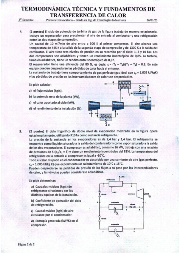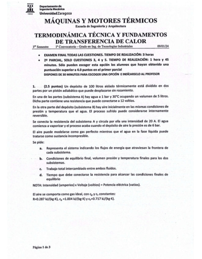 He publicado nuevos examenes de 2º Termodinámica Técnica y Fundamentos de Transmisión de Calor: Enunciado-1aConv-2025-TERMO.pdf