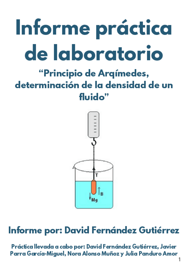 Un informe de una práctica de laboratorio del principio de Arquímedes