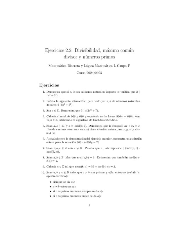 He publicado nuevos ejercicios de 1º Matemática Discreta y Lógica Matemática I: Ejercicios-Divisibilidad-maximo-comun.pdf