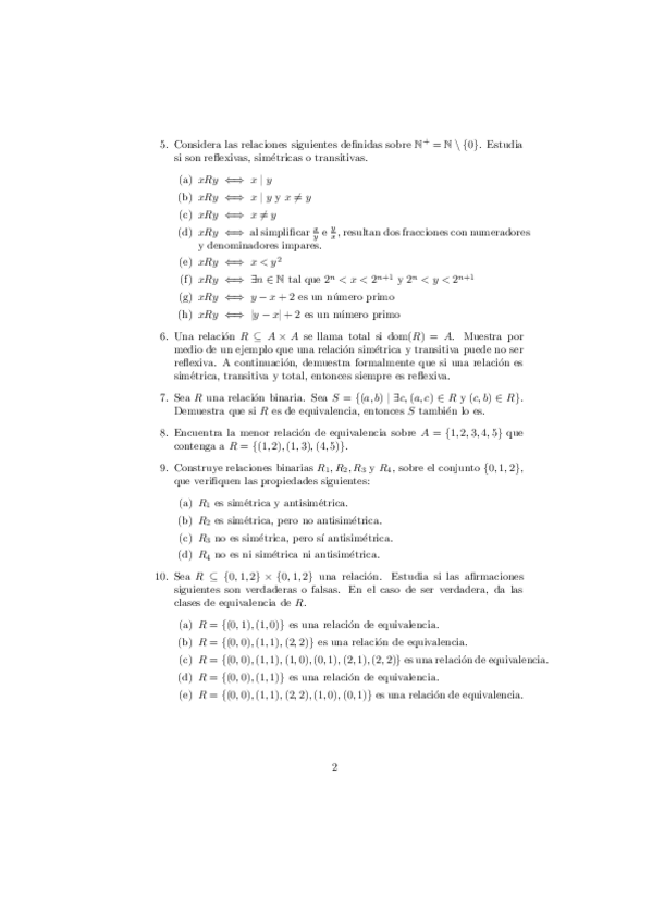 He publicado nuevos ejercicios de 1º Matemática Discreta y Lógica Matemática I: Ejercicios-Relaciones.pdf