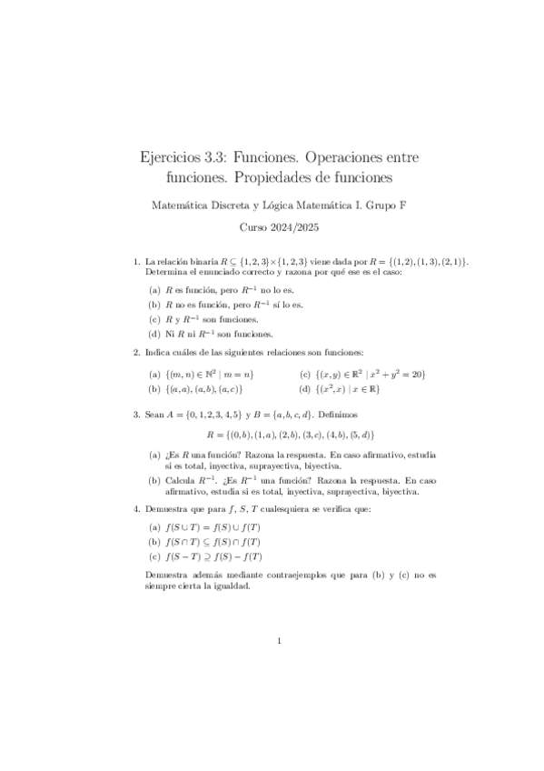 He publicado nuevos ejercicios de 1º Matemática Discreta y Lógica Matemática I: Soluciones-Funciones.pdf