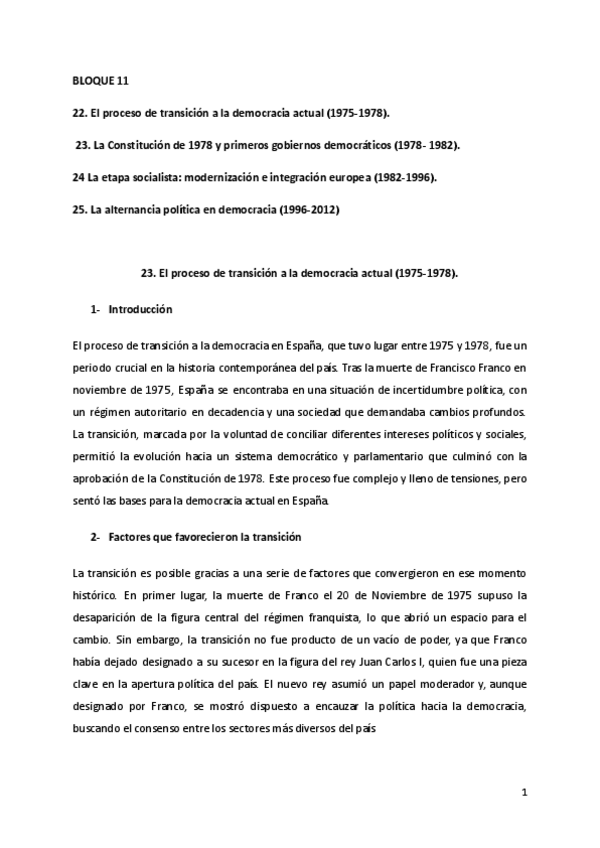 Los 4 temas del bloque 11 de historia de España, resumido y con todo lo necesario