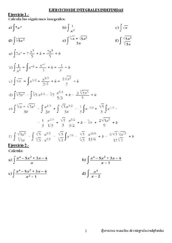 He publicado nuevos ejercicios de 1º Matemáticas I: Integrales Indefinidas - Ejercicios resueltos.pdf