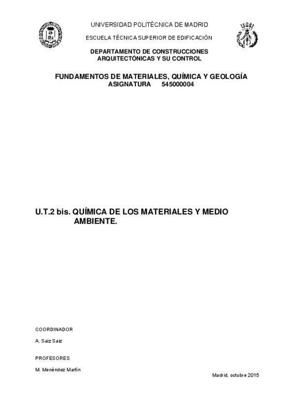 He publicado nuevos apuntes de 1º Fundamentos de Materiales, Química y Geología: UNIDAD TEMÁTICA 2.pdf