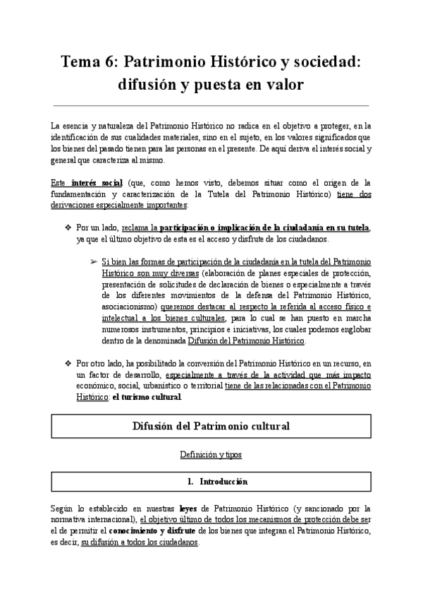 He publicado nuevos apuntes de 2º Introducción al Patrimonio Histórico y a Bienes Culturales: Tema 6_Patrimonio Histórico y sociedad: difusión y puesta en valor.pdf