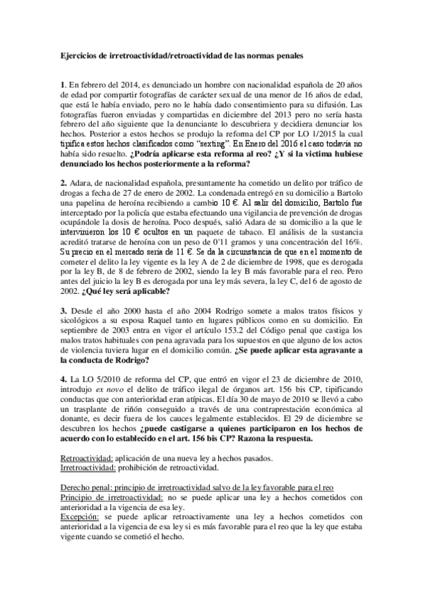 He publicado nuevos ejercicios de 1º Introducción Al Derecho Penal: EJERCICIOS-IRRETROACTIVIDAD.pdf