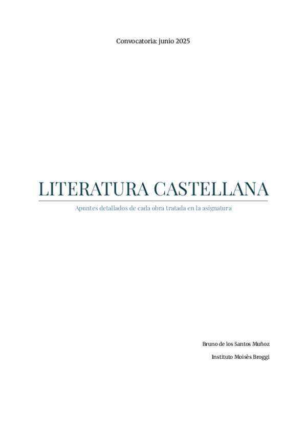 Apuntes detallados de todos los aspectos de cada obra que entraba en selectividad en 2025, hechos por mí. Estudié solamente de estos apuntes y pude sacar un 10, espero que os sriva :)
