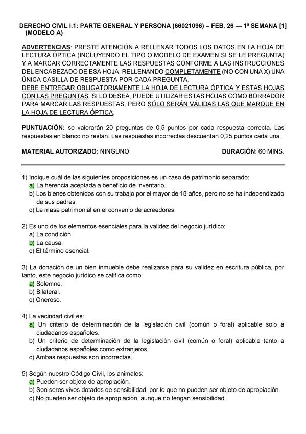 EXAMENES RESUELTOS AÑO 2025-2026 DERECHO CIVIL I: PARTE GENERAL Y PERSONA