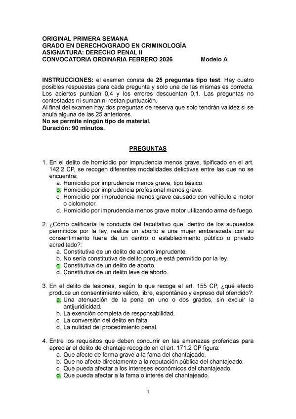 EXAMENES RESUELTOS AÑO 2025-2026 DERECHO PENAL II