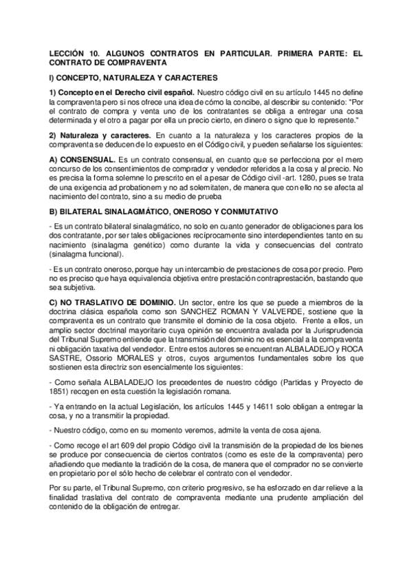 He publicado nuevos apuntes de 1º Derecho Civil. Parte General: LECCIÓN 10. LA COMPRAVENTA (PRIMERA PARTE) resumen.pdf