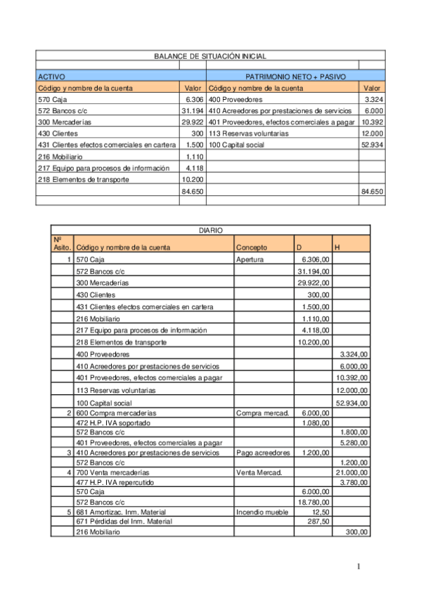 He publicado nuevos ejercicios de 1º Introducción a la Contabilidad: ejercicios resueltos