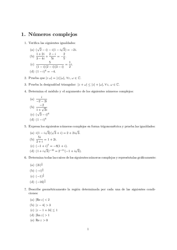 He publicado nuevos ejercicios de 1º Matemáticas I: Números complejos