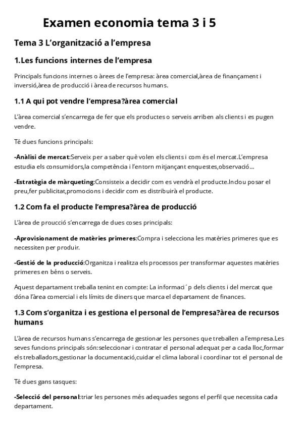 Apuntes de economia tema 3 “L’organització de l’empresa” Los apuntes están en valenciano.