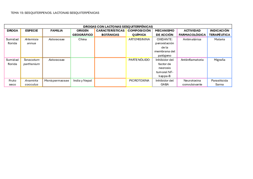 TABLAS SEGUNDO PARCIAL FARMACOGNOSIA